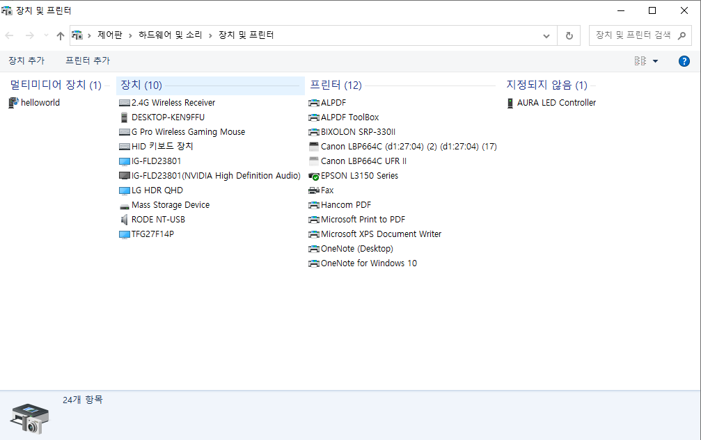 프린터 드라이버 확인